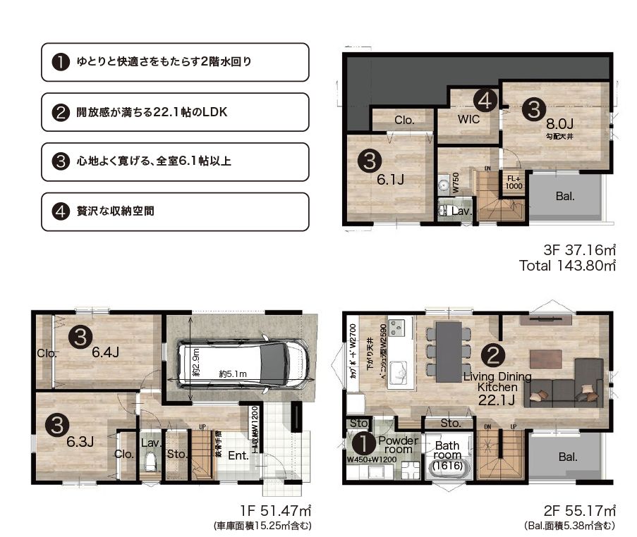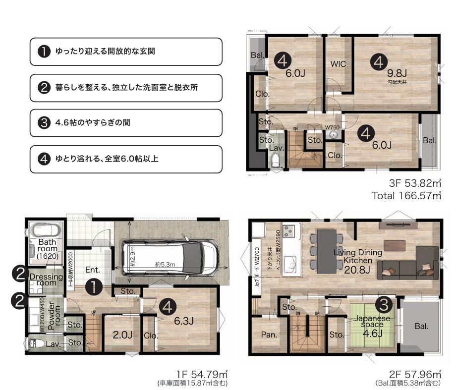 20帖以上のゆったりリビング!地震の揺れを吸収する制震ダンパー付き&耐震等級2で暮らしの安全を守る新築戸建!前面道路は、開放感のある約8mの公道です!