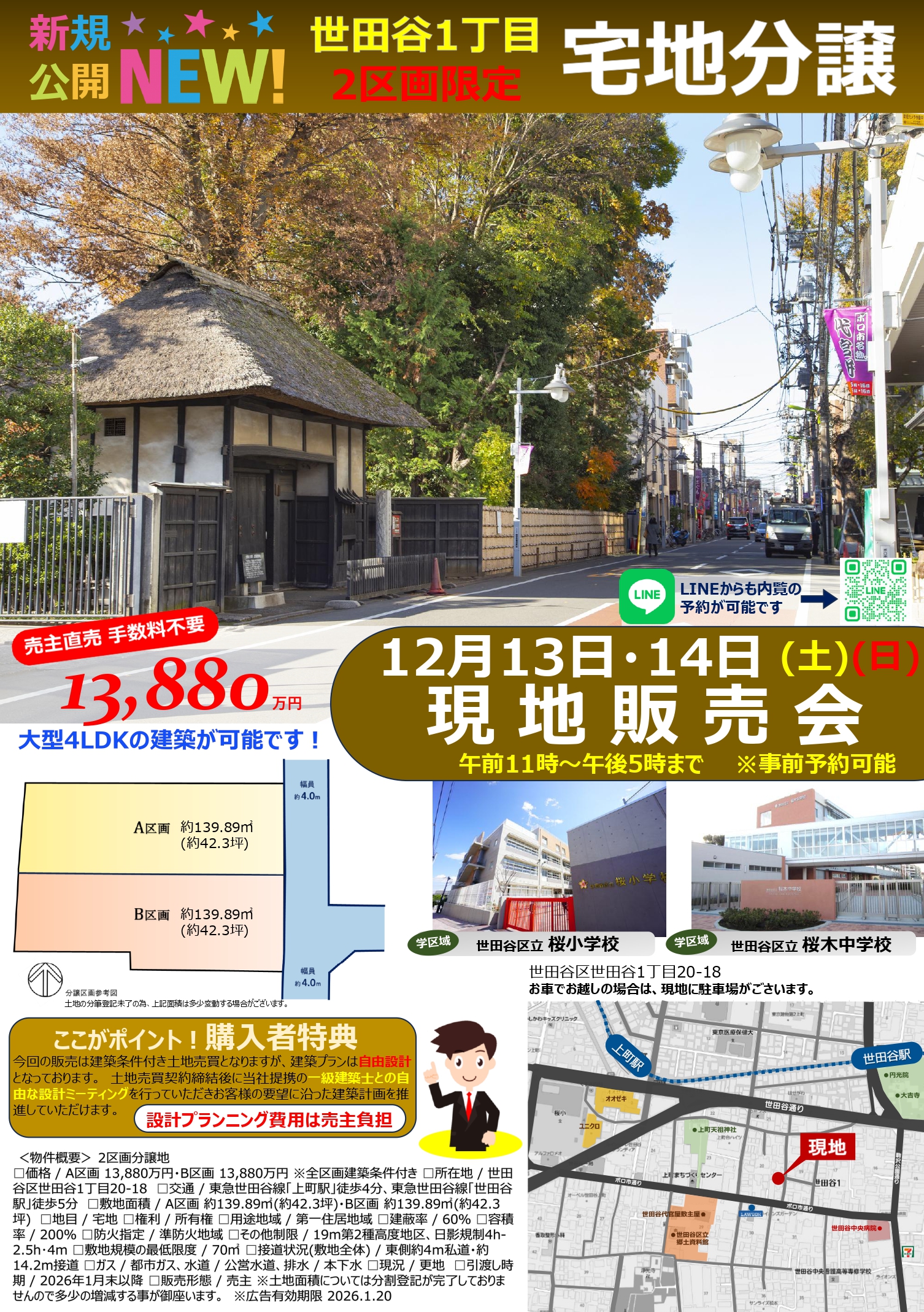 世田谷1丁目クレムネスト分譲プロジェクト 現地販売会のお知らせ